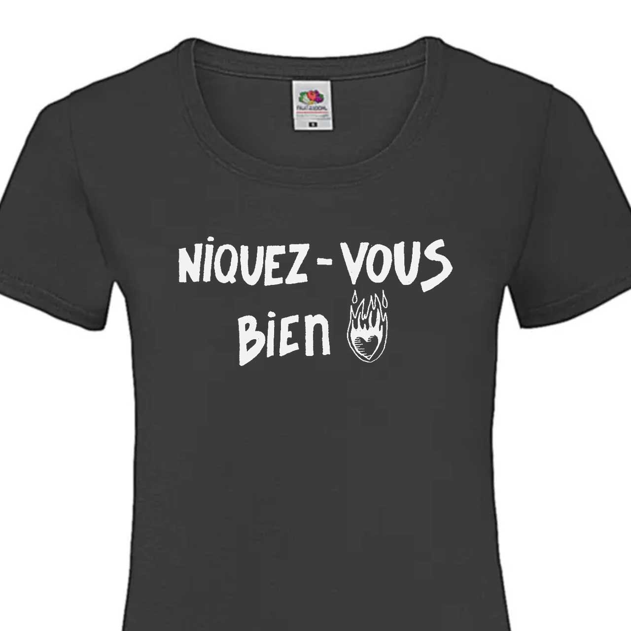 Tee-shirt femme noir avec visuel ‘Argalouve : Niquez-vous bien’
