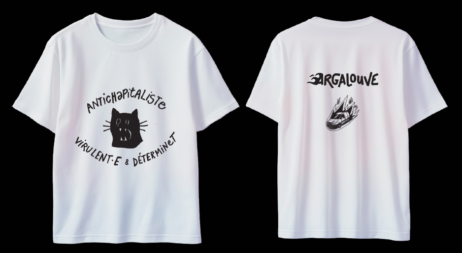 Tee-shirt homme blanc avec visuel ‘Argalouve : Antichapitaliste’