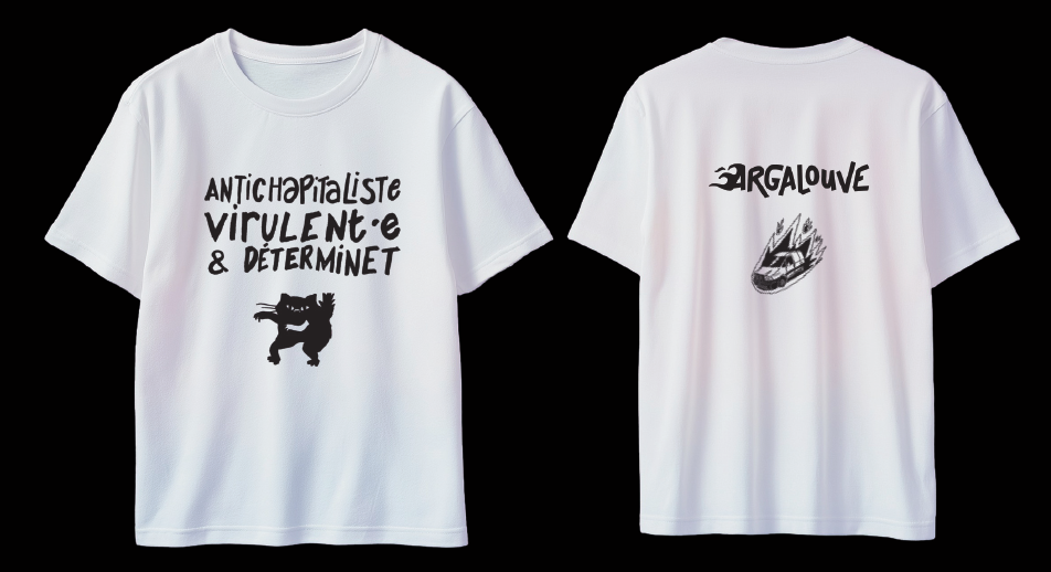 Tee-shirt homme blanc avec visuel ‘Argalouve : Antichapitaliste’