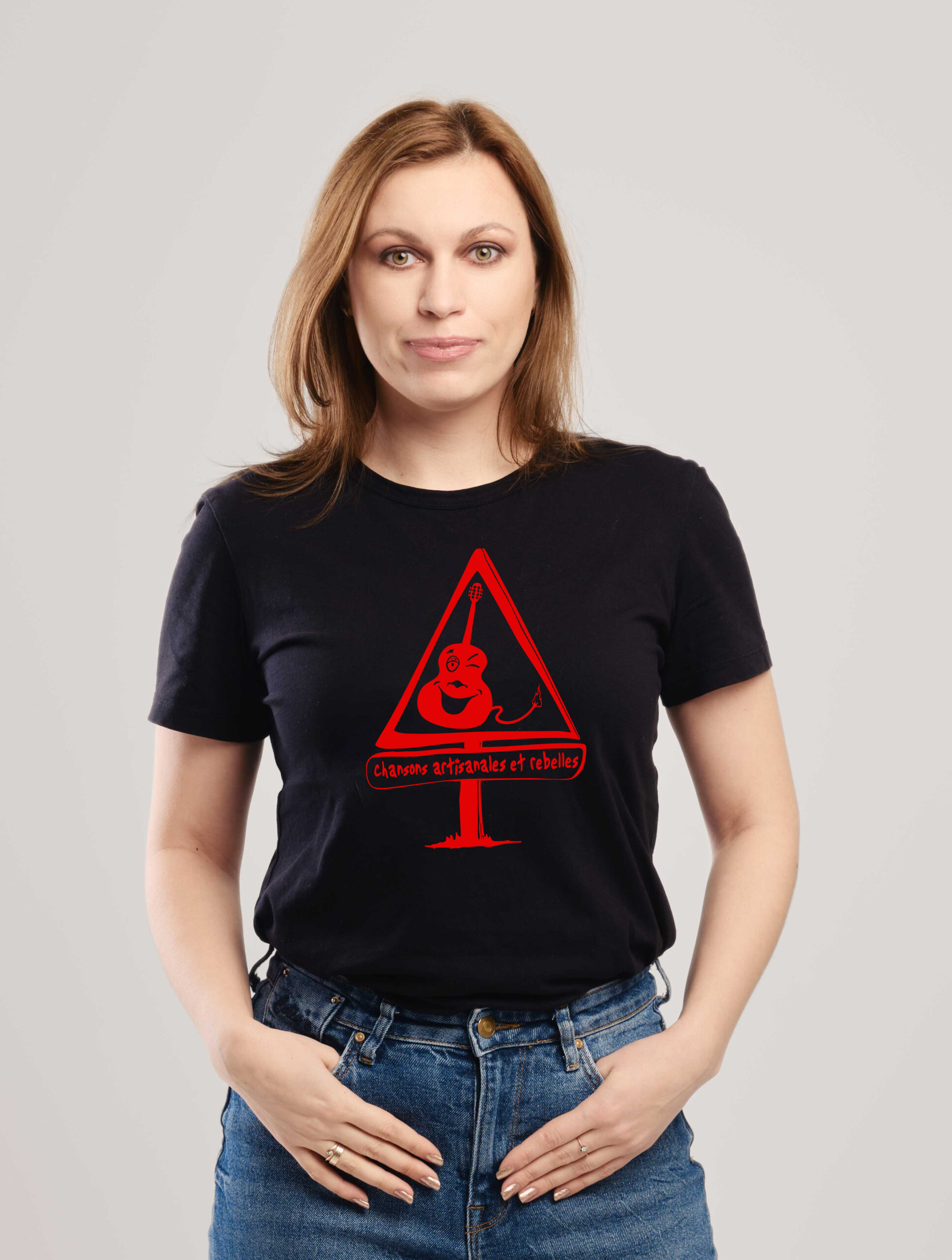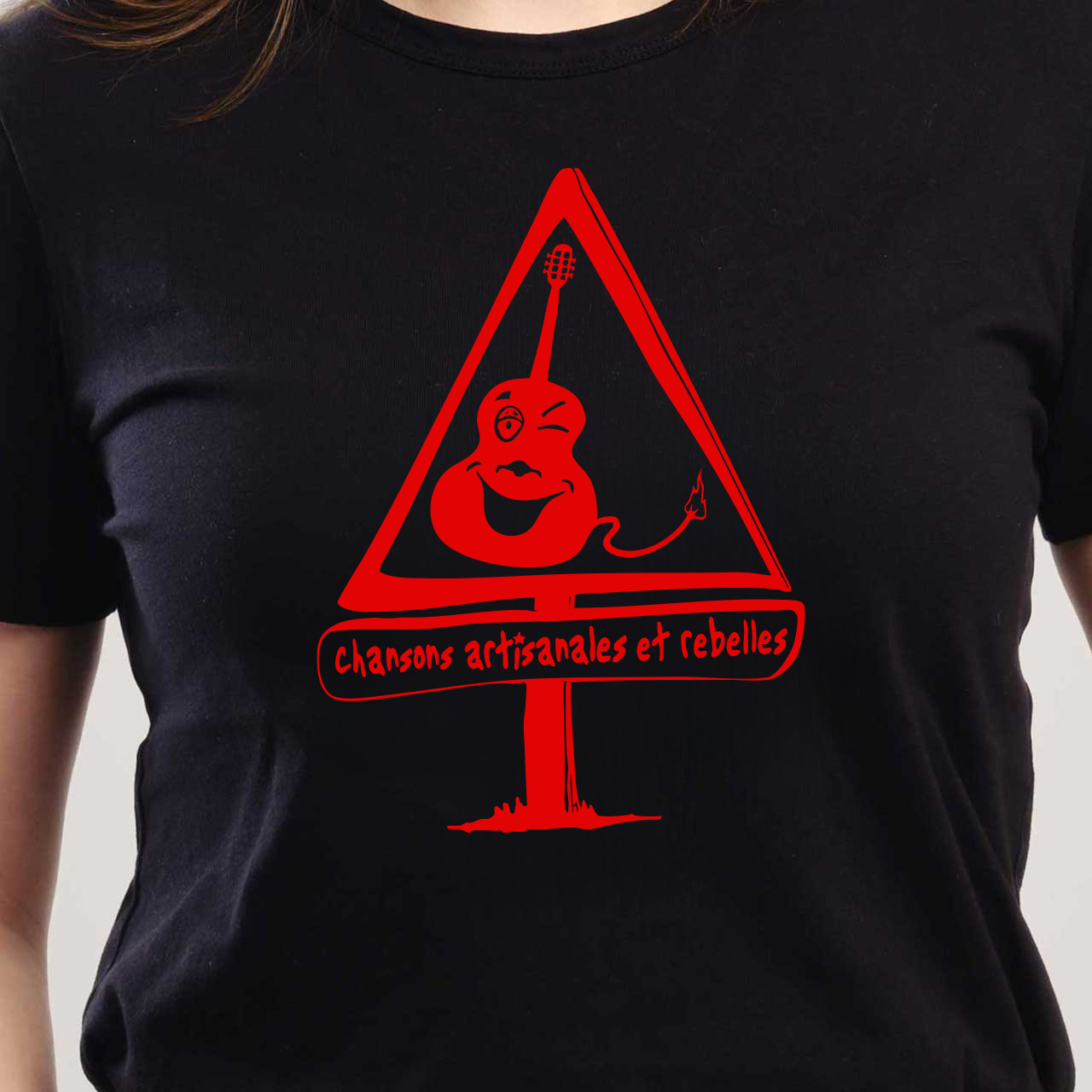 Tee-shirt femme noir avec visuel ‘Christian Leduc’