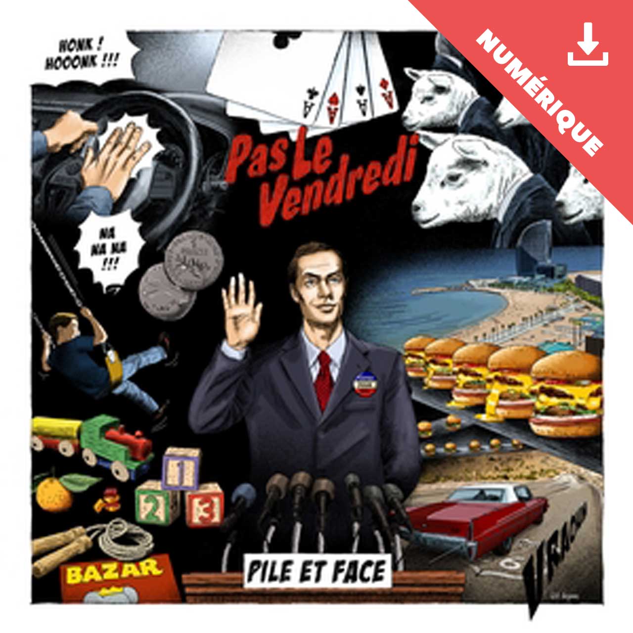 La version vinyle du 3ème opus « Pile Et Face » du groupe Sarthois PAS LE VENDREDI sortie en décembre 2023 des presses vendéennes de chez B-Side Factory. Toujours 100 % auto-produit par la bande de potes de PLV qui affirme encore son identité musicale bien trempée ! Pour cet album, la réalisation graphique de la pochette a été confiée à l’artiste BéDéiste français Will Argunas.